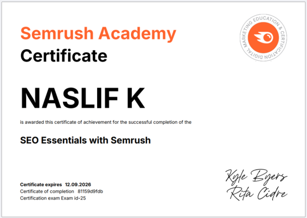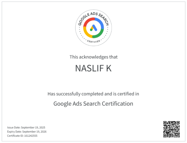 I’m Naslif, a digital marketing strategist in Kannur, Kerala. I specialize in SEO, SMM, SEM, and web design (WordPress), and I’m committed to helping you grow your business with my digital marketing expertise.